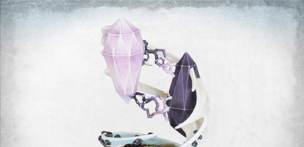 Effet : Placez un Sanctuaire d'Amyntok à portée de mêlée de la cible, visible du lanceur et à plus de 3" des unités ennemies. Un Sanctuaire d’Amyntok se compose de 3 parties qui doivent être placées avec leurs pointes en contact d’une autre partie, de sorte à former un cercle autour de la cible.